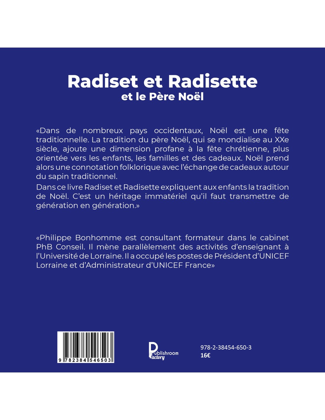 Dans ce livre Radiset et Radisette expliquent aux enfants la tradition de Noël. C’est un héritage immatériel qu’il faut transmettre de génération en génération.»