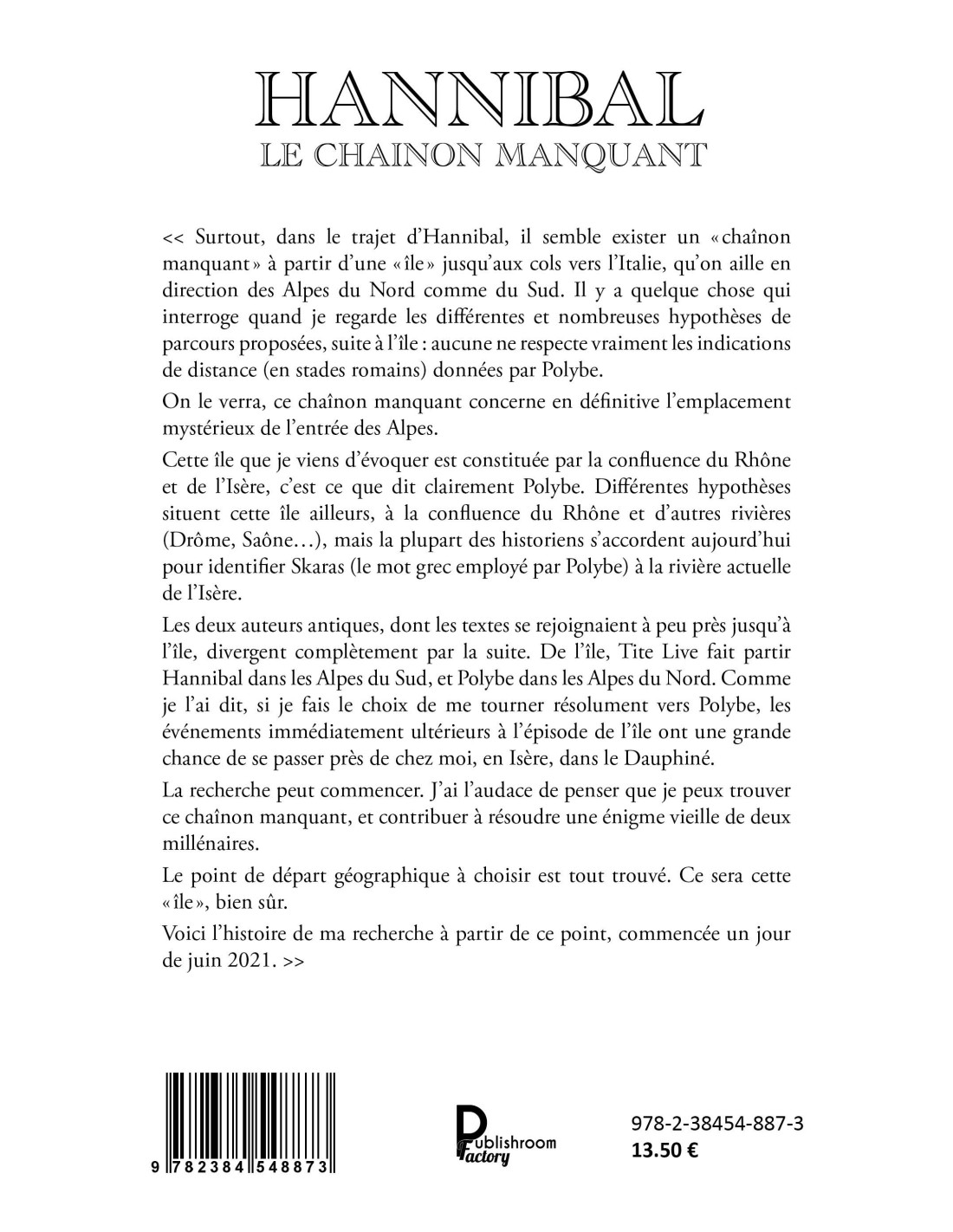 On le verra, ce chaînon manquant concerne en définitive l’emplacement mystérieux de l’entrée des Alpes.