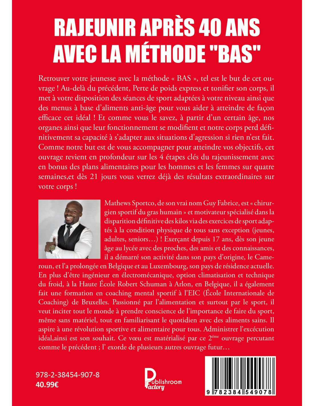Retrouver votre jeunesse avec la méthode « BAS », tel est le but de cet ouvrage ! Au-delà du précédent, Perte de poids express et tonifier son corps, il met à votre disposition des séances de sport adaptées à votre niveau ainsi que des menus à base d’aliments anti-âge pour vous aider à atteindre de façon efficace cet idéal ! Et comme vous le savez, à partir d’un certain âge, nos organes ainsi que leur fonctionnement se modifient et notre corps perd définitivement sa capacité à s’adapter aux situations d’agression si rien n’est fait.