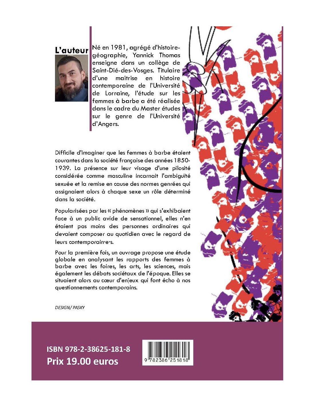 Né en 1981, agrégé d’histoire-géographie, Yannick Thomas enseigne dans un collège de Saint-Dié-des-Vosges. Titulaire d’une maitrise en histoire contemporaine de l’Université de Lorraine, l’étude sur les femmes à barbe a été réalisée dans le cadre du Master études sur le genre de l’Université d’Angers.
