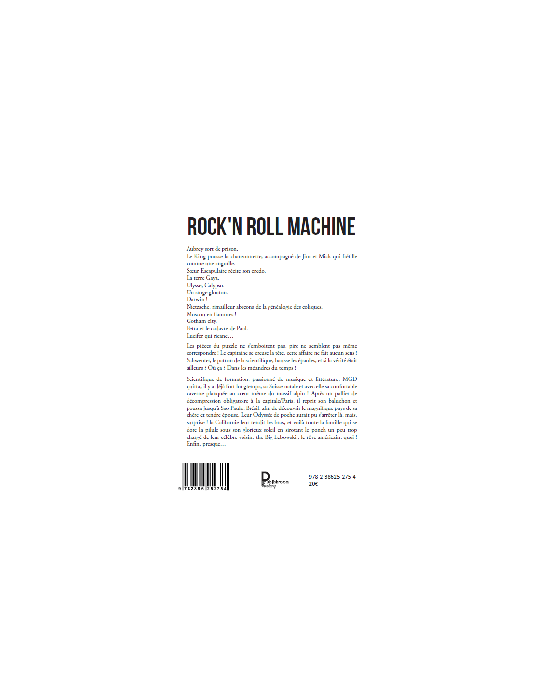 Scientifique de formation, passionné de musique et littérature, MGD quitta, il y a déjà fort longtemps, sa Suisse natale et avec elle sa confortable caverne planquée au coeur même du massif alpin ! Après un pallier de décompression obligatoire à la capitale/Paris, il reprit son baluchon et poussa jusqu’à Sao Paulo, Brésil, afin de découvrir le magnifique pays de sa chère et tendre épouse. Leur Odyssée de poche aurait pu s’arrêter là, mais, surprise ! la Californie leur tendit les bras, et voilà toute la famille qui se dore la pilule sous son glorieux soleil en sirotant le ponch un peu trop chargé de leur célèbre voisin, the Big Lebowski ; le rêve américain, quoi !
