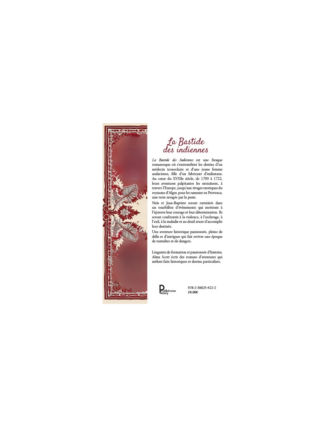 La Bastide des Indiennes est une fresque romanesque où s’entremêlent les destins d’un médecin iconoclaste et d’une jeune femme audacieuse, fille d’un fabricant d’indiennes. Au cœur du XVIIIe siècle, de 1709 à 1722, leurs aventures palpitantes les entraînent, à travers l’Europe, jusqu’aux rivages exotiques du royaume d’Alger, pour les ramener en Provence, une terre ravagée par la peste.