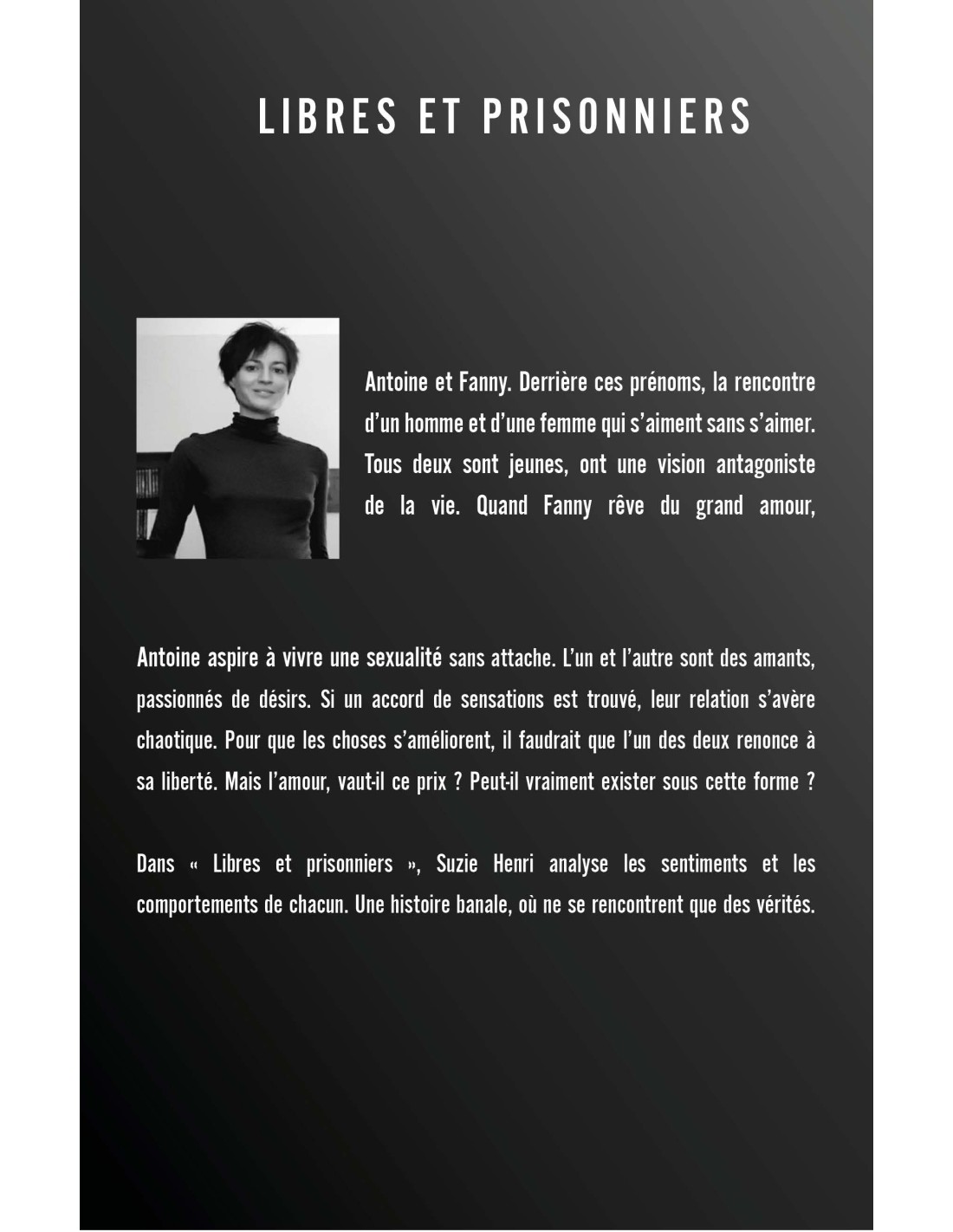 Dans « Libres et prisonniers », Suzie Henri analyse les sentiments et les comportements de chacun. Une histoire banale, où ne se rencontrent que des vérités.