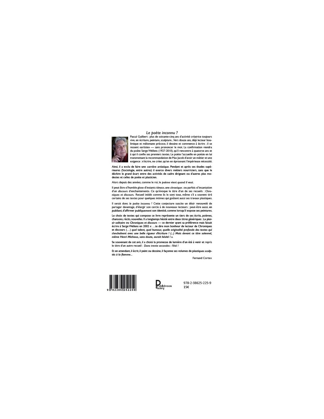 Pascal Guilbert : plus de soixante-cinq ans d’activité créatrice toujours vive, en écriture, peinture, sculpture...Vers douze ans, déjà lecteur boulimique et mélomane précoce, il dessine et commence à écrire ; il se ressent « artiste » — sans prononcer le mot. La confirmation viendra du poète Serge Wellens (1927-2010), qu’il rencontre à quatorze ans et à qui il confie ses premiers textes. Le poète l’accueille en poésie en lui transmettant la recommandation de Max Jacob d’avoir un métier et une exigence : n’écrire, ne créer, qu’en en éprouvant l’impérieuse nécessité.