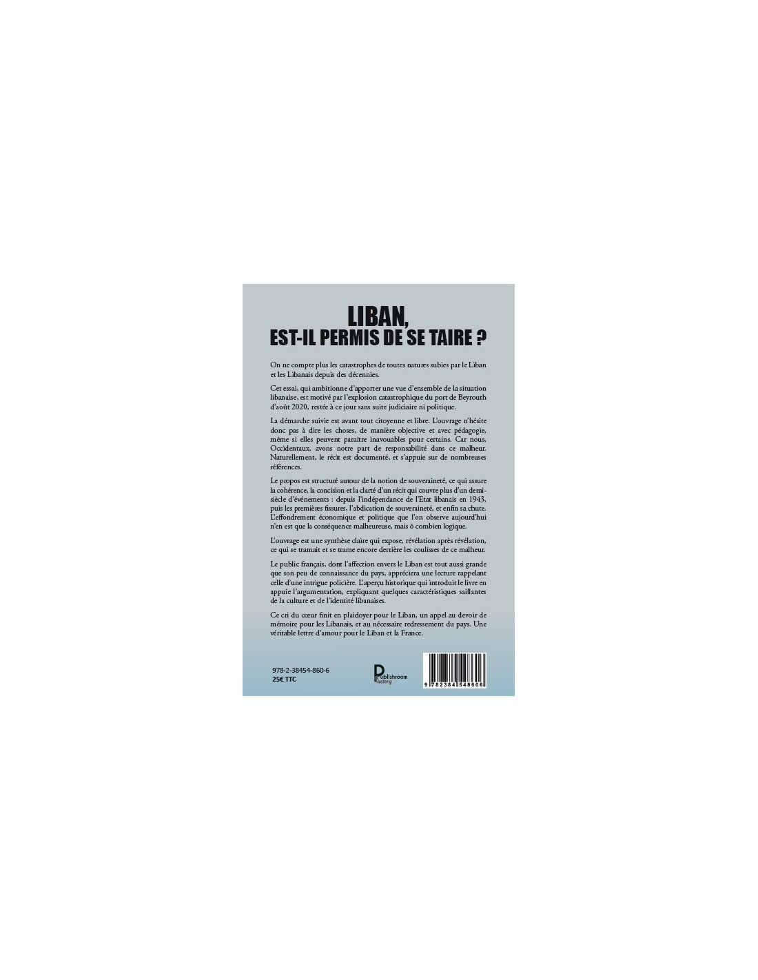 On ne compte plus les catastrophes de toutes natures subies par le Liban et les Libanais depuis des décennies. Cet essai, qui ambitionne d’apporter une vue d’ensemble de la situation libanaise, est motivé par l’explosion catastrophique du port de Beyrouth d’août 2020, restée à ce jour sans suite judiciaire ni politique. La démarche suivie est avant tout citoyenne et libre. L’ouvrage n’hésite donc pas à dire les choses, de manière objective et avec pédagogie, même si elles peuvent paraître inavouables pour certains. Car nous, Occidentaux, avons notre part de responsabilité dans ce malheur. Naturellement, le récit est documenté, et s’appuie sur de nombreuses références. Le propos est structuré autour de la notion de souveraineté, ce qui assure la cohérence, la concision et la clarté d’un récit qui couvre plus d’un demi-siècle d’événements : depuis l’indépendance de l’Etat libanais en 1943, puis les premières fissures, l’abdication de souveraineté, et enfin sa chute. L’effondrement économique et politique que l’on observe aujourd’hui n’en est que la conséquence malheureuse, mais ô combien logique. L’ouvrage est une synthèse claire qui expose, révélation après révélation, ce qui se tramait et se trame encore derrière les coulisses de ce malheur. Le public français, dont l’affection envers le Liban est tout aussi grande que son peu de connaissance du pays, appréciera une lecture rappelant celle d’une intrigue policière. L’aperçu historique qui introduit le livre en appuie l’argumentation, expliquant quelques caractéristiques saillantes de la culture et de l’identité libanaises. Ce cri du cœur finit en plaidoyer pour le Liban, un appel au devoir de mémoire pour les Libanais, et au nécessaire redressement du pays. Une véritable lettre d’amour pour le Liban et la France.