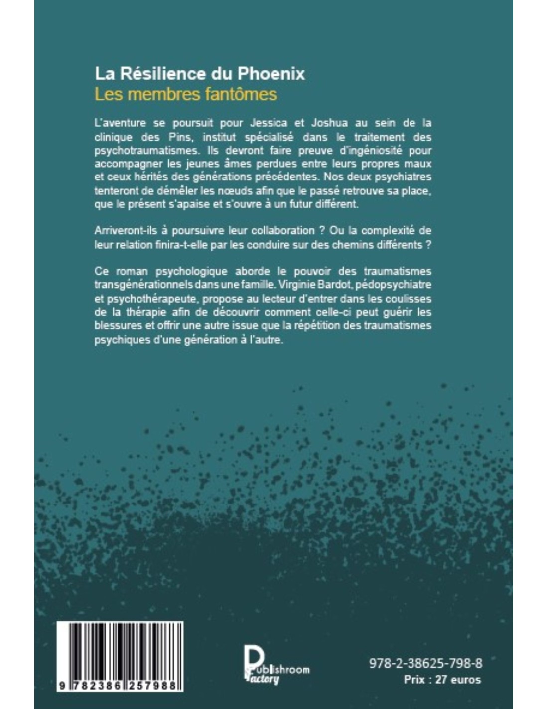 Ce roman psychologique aborde le pouvoir des traumatismes transgénérationnels dans une famille. Virginie Bardot, pédopsychiatre et psychothérapeute, propose au lecteur d’entrer dans les coulisses de la thérapie afin de découvrir comment celle-ci peut guérir les blessures et offrir une autre issue que la répétition des traumatismes psychiques d’une génération à l’autre.