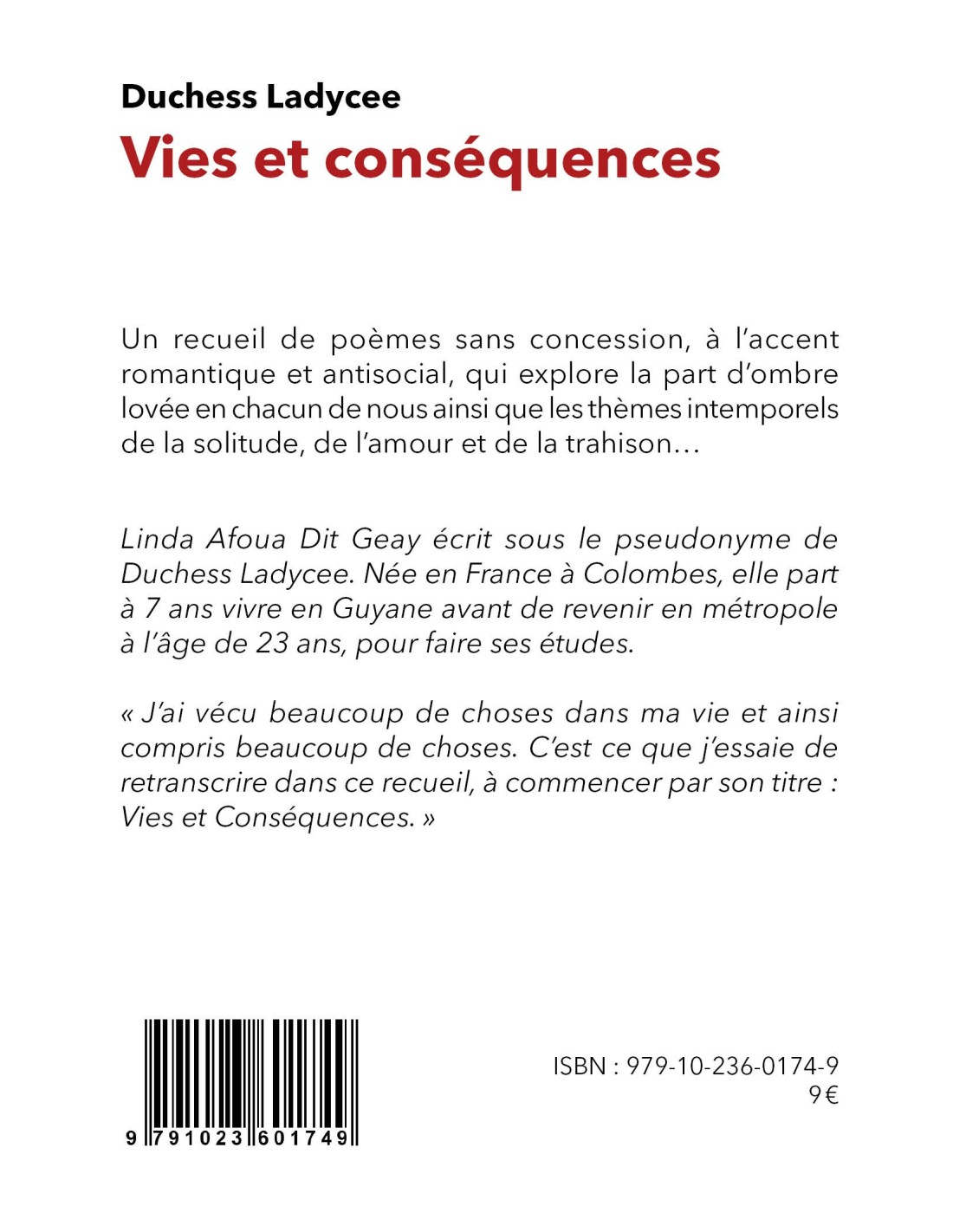« Jai vécu beaucoup de choses dans ma vie et ainsi compris beaucoup de choses. Cest ce que jessaye de retranscrire dans ce recueil, à commencer par son titre : Vies et Conséquences. »