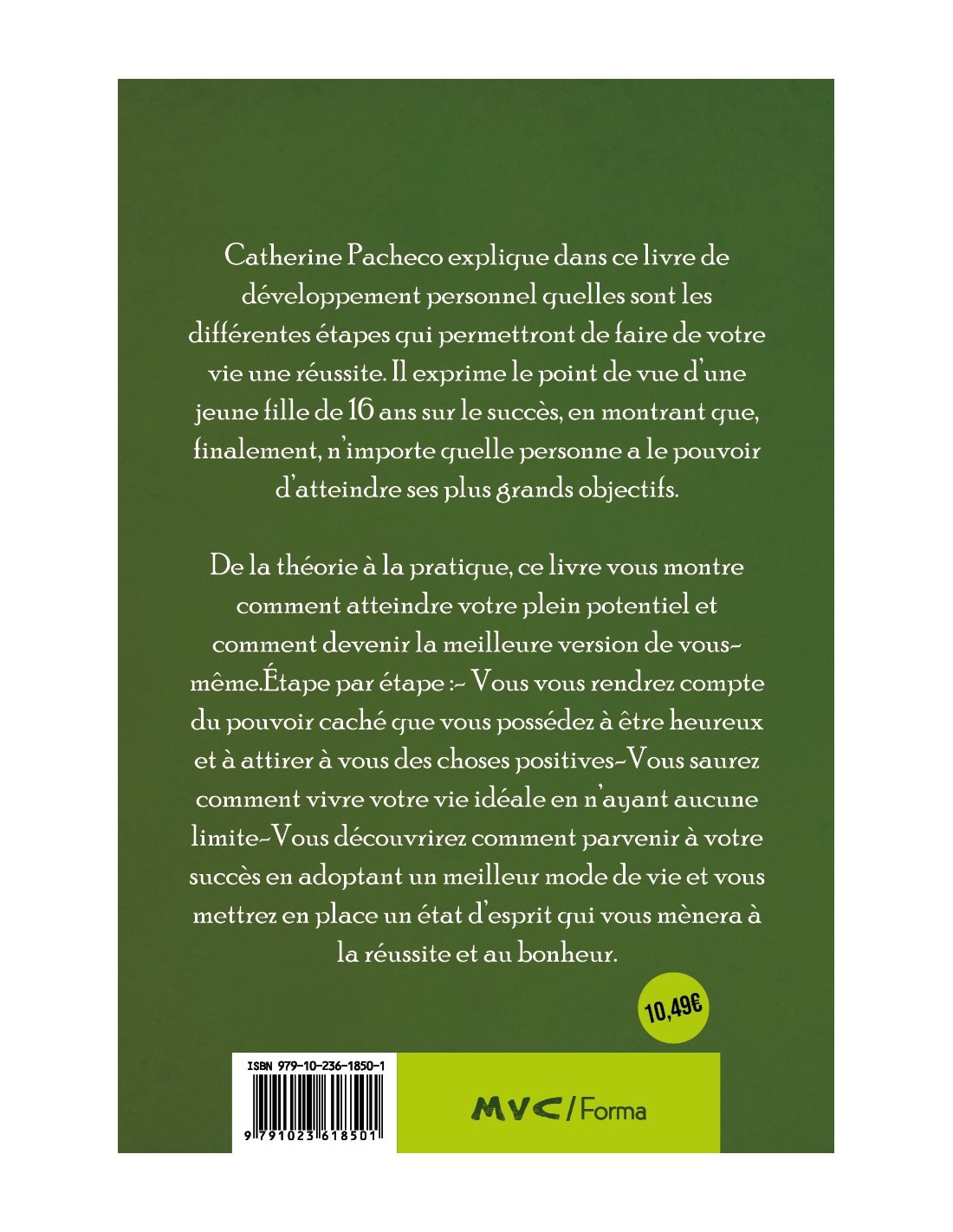 Catherine Pacheco explique dans ce livre de développement personnel quelles sont les différentes étapes qui permettront de faire de votre vie une réussite. Il exprime le point de vue d'une jeune fille de 16 ans sur le succès, en montrant que, finalement, n'importe quelle personne a le pouvoir d'atteindre ses plus Grands objectifs.