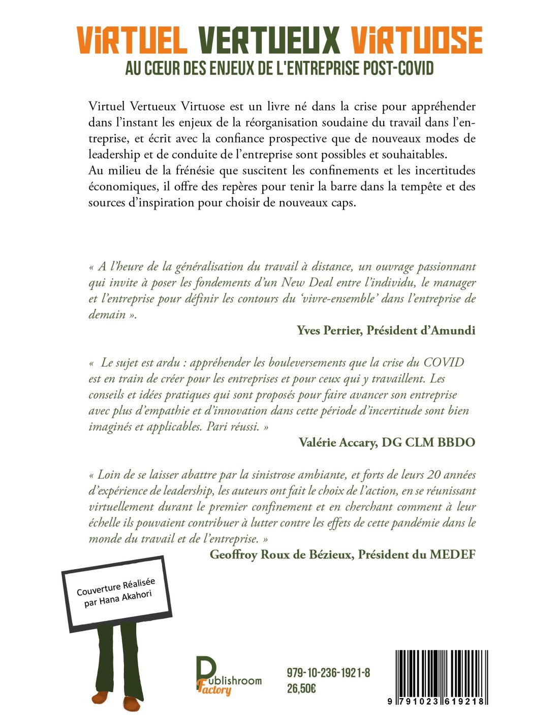 Virtuel Vertueux Virtuose est un livre né dans la crise pour appréhender dans l’instant les enjeux de la réorganisation soudaine du travail dans l’entreprise, et écrit avec la confiance prospective que de nouveaux modes de leadership et de conduite de l’entreprise sont possibles et souhaitables.