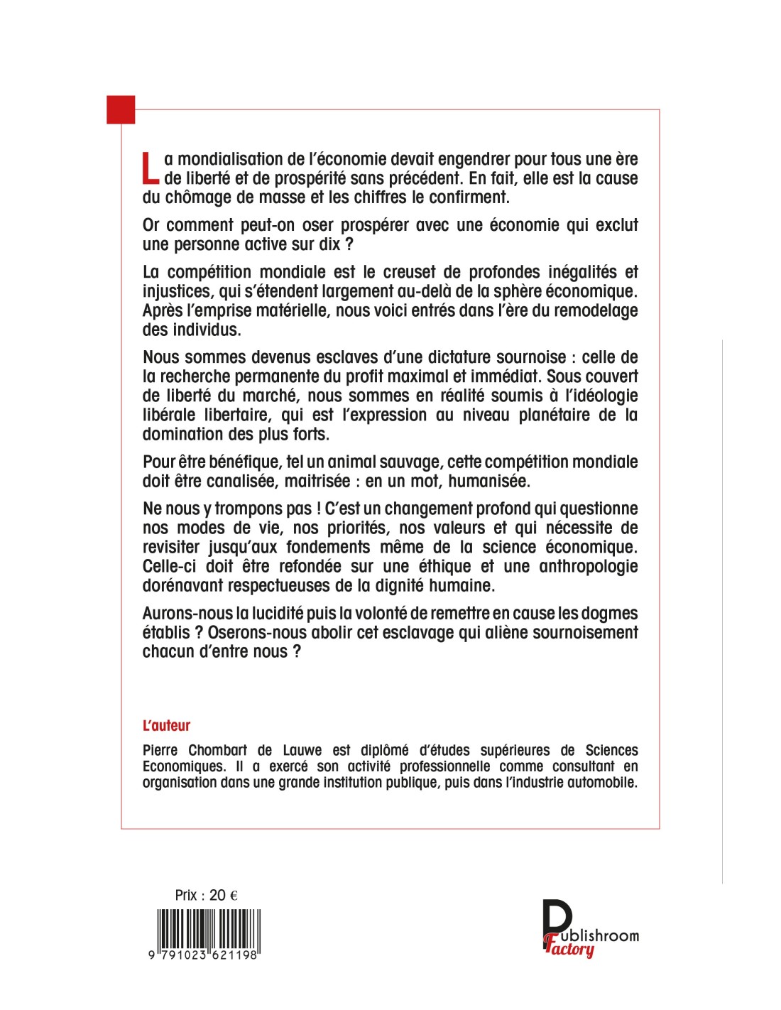 Pierre Chombart de Lauwe est diplômé d’études supérieures de Sciences Economiques. Il a exercé son activité professionnelle comme consultant en organisation dans une grande institution publique, puis dans l’industrie automobile.