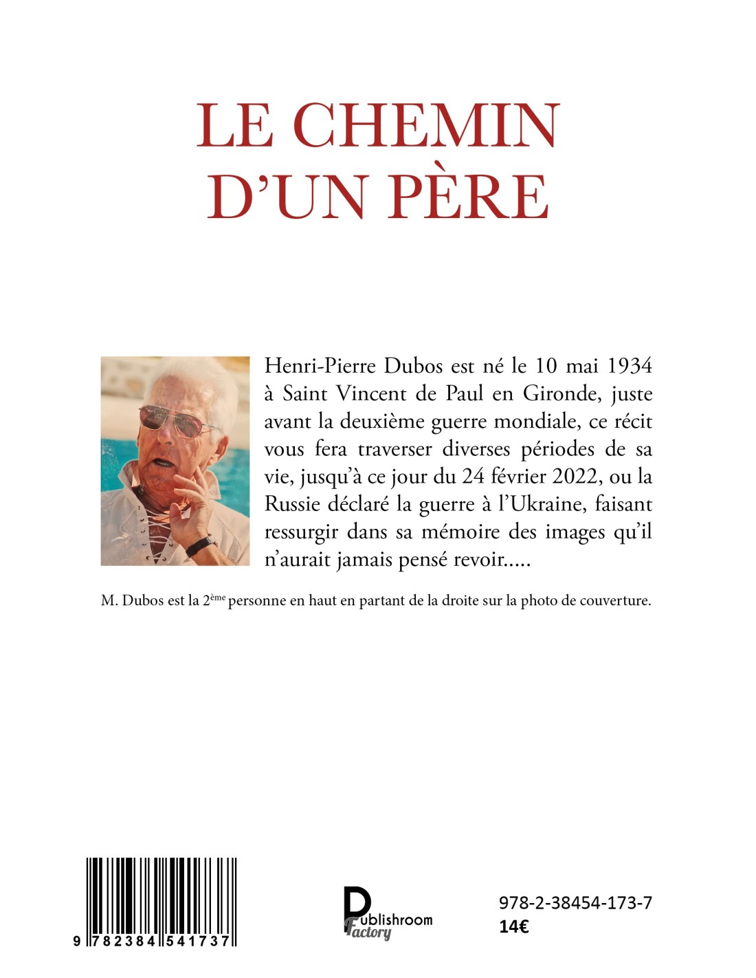 Henri-Pierre Dubos est né le 10 mai 1934 à Saint Vincent de Paul en Gironde, juste avant la deuxième guerre mondiale, ce récit vous fera traverser diverses périodes de sa vie, jusqu’à ce jour du 24 février 2022, ou la Russie déclaré la guerre à l’Ukraine, faisant ressurgir dans sa mémoire des images qu’il n’aurait jamais pensé revoir.....