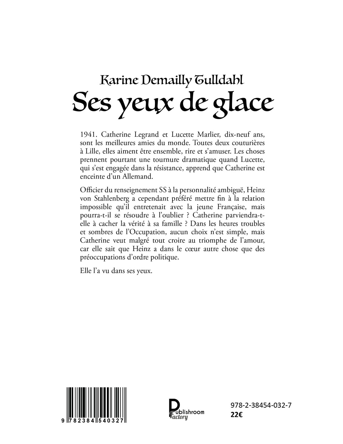 Officier du renseignement SS à la personnalité ambiguë, Heinz von Stahlenberg a cependant préféré mettre fin à la relation impossible qu’il entretenait avec la jeune Française, mais pourra-t-il se résoudre à l’oublier ? Catherine parviendra-t-elle à cacher la vérité à sa famille ? Dans les heures troubles et sombres de l’Occupation, aucun choix n’est simple, mais Catherine veut malgré tout croire au triomphe de l’amour, car elle sait que Heinz a dans le cœur autre chose que des préoccupations d’ordre politique.