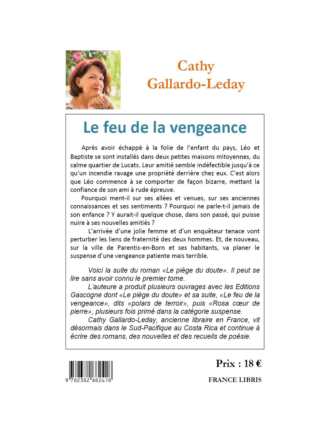 Cathy Gallardo-Leday, ancienne libraire en France, vit désormais dans le Sud-Pacifique au Costa Rica et continue à écrire des romans, des nouvelles et des recueils de poésie.