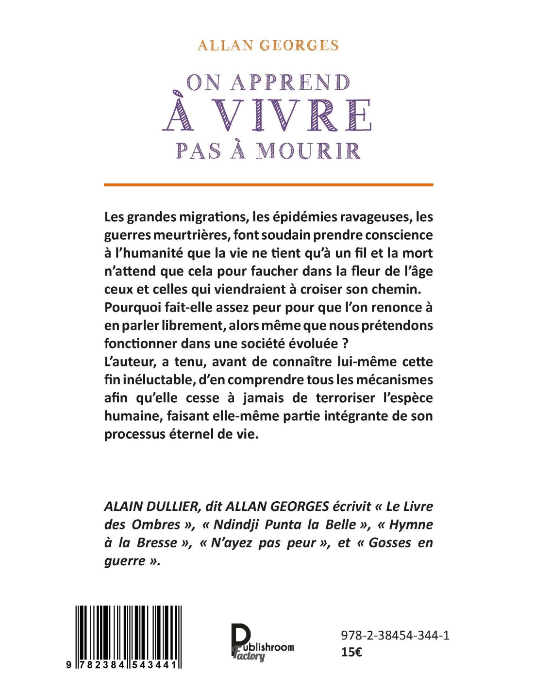 L’auteur, a tenu, avant de connaître lui-même cette fin inéluctable, d’en comprendre tous les mécanismes afin qu’elle cesse à jamais de terroriser l’espèce humaine, faisant elle-même partie intégrante de son processus éternel de vie.