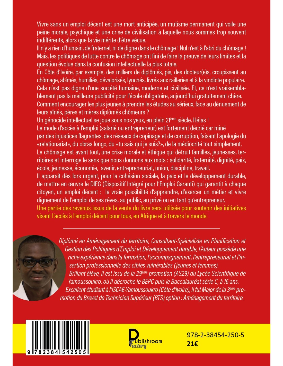 Il apparaît dès lors urgent, pour la cohésion sociale, la paix et le développement durable, de mettre en œuvre le DIEG (Dispositif Intégré pour l’Emploi Garanti) qui garantit à chaque citoyen, un emploi décent : la vraie possibilité d’apprendre, d’exercer un métier et vivre dignement de l’emploi de ses rêves, au public, au privé ou en tant qu’entrepreneur.