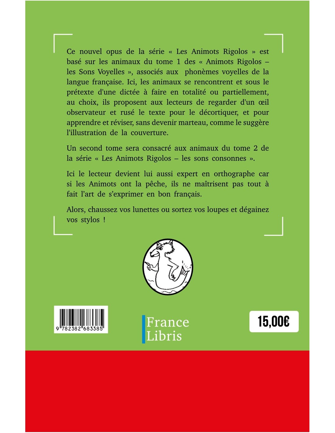 Ce nouvel opus de la série « Les Animots Rigolos » est basé sur les animaux du tome 1 des « Animots Rigolos - les Sons Voyelles », associés aux phonèmes voyelles de la langue française. Ici, les animaux se rencontrent et sous le prétexte d’une dictée à faire en totalité ou partiellement, au choix, ils proposent aux lecteurs de regarder d’un œil observateur et rusé le texte pour le décortiquer, et pour apprendre et réviser, sans devenir marteau, comme le suggère l’illustration de la couverture.